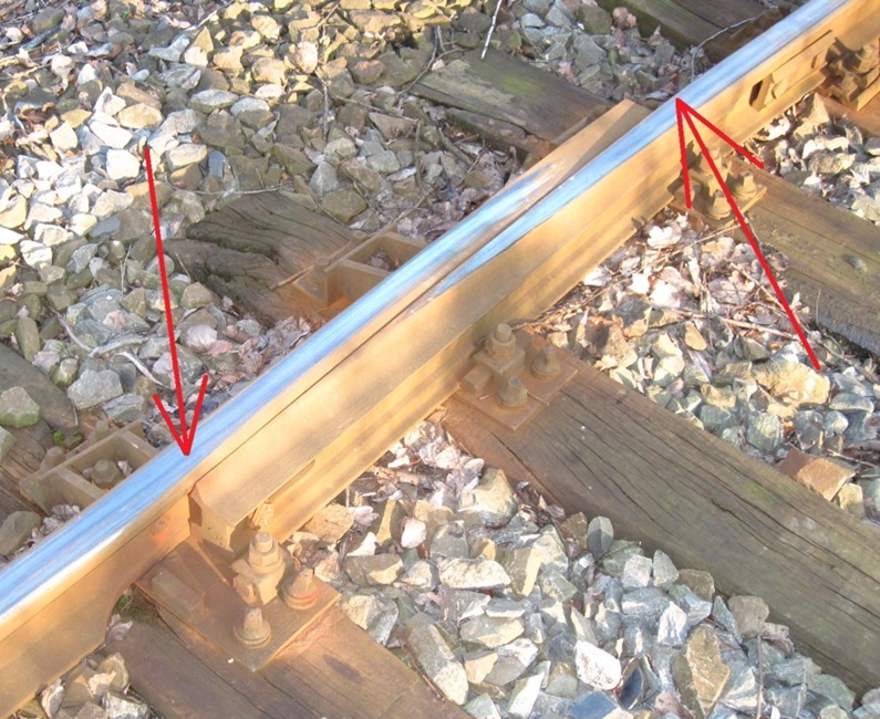| Měřit v terénu: | Tento DM již nepoužívat! Měřil se u vnitřního hrotu na rozchodku v ose koleje. Nový způsob měření viz DM 10370-372 - zaměřit konec pevné a pohyblivé kolejnice, na rozchodku v ose koleje, výškově v nepřevýšeném kolejnicovém pásu. |