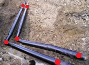Měřit v terénu:Měřit lomové body potrubí před záhozem, výškově vrch potrubí.