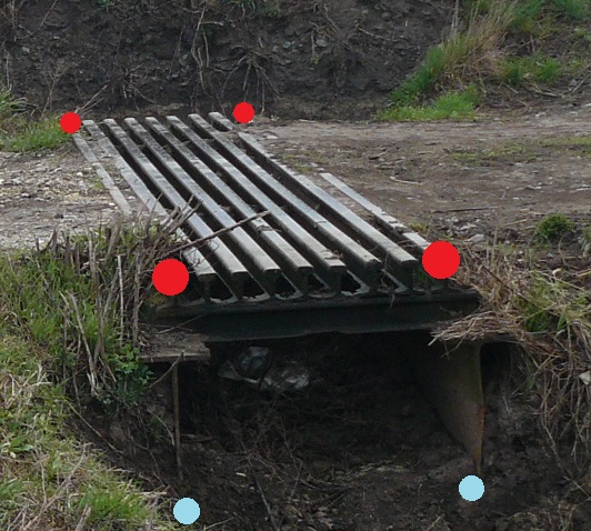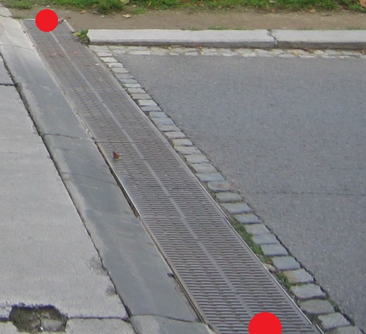 | Měřit v terénu: | Pro mapování zaměřit lomové body v ose plechového kanálku/prahové vpusti na povrchu.