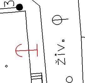 Referenční bod staničení:bod v ose objektu, výškově na terénu