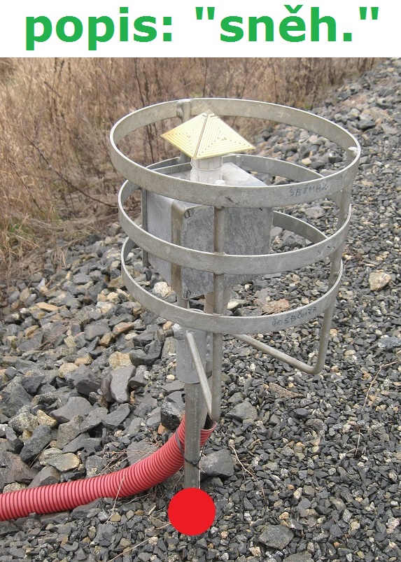 Pomocné:U snímače horkoběžnosti obručí je na opačné straně koleje umístěna stínící deska pro zabránění pronikání cizího tepelného zdroje do optiky snímače (kreslit pomocí DM 60050). Vlastní snímač je umístěn mimo koleje tak, aby jeho zorné pole bylo v úrovni brzdných špalků (kotoučových brzd).
