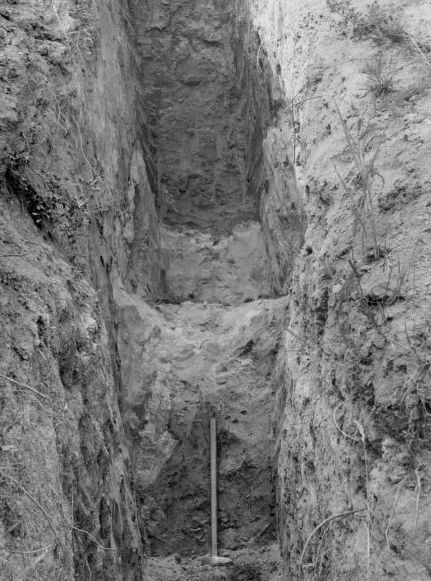 Pomocné:Zaměřit jako terénní útvar. Popisnou značku umístit podle délky rýhy tak, aby zákres byl přehledný a srozumitelný.