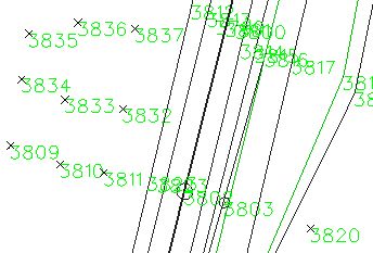 | Poznámka: | Tento DM se používá podle uvážení zhotovitele nebo na objednávku zadavatele prací. Slouží k zviditelnění naměřených bodů, přes které nejde kresba. Víceméně je to náhrada za DM 80002, který při vypnutí vrstvy 60 (čísla bodů) není vidět. |