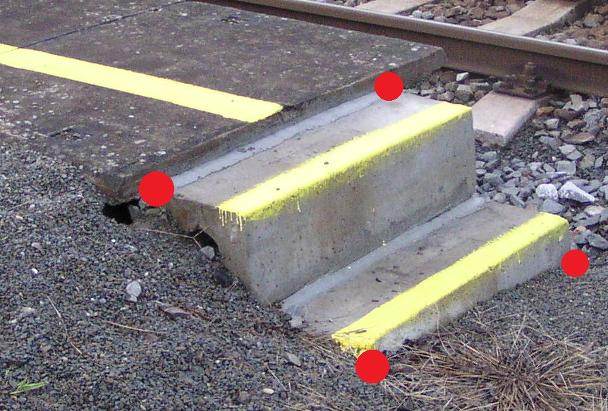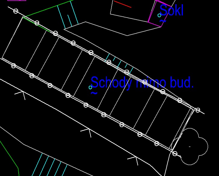 | Měřit v terénu: | Zaměřit horní a dolní hrany (obvod) a podesty, nikoliv jednotlivé schody. |