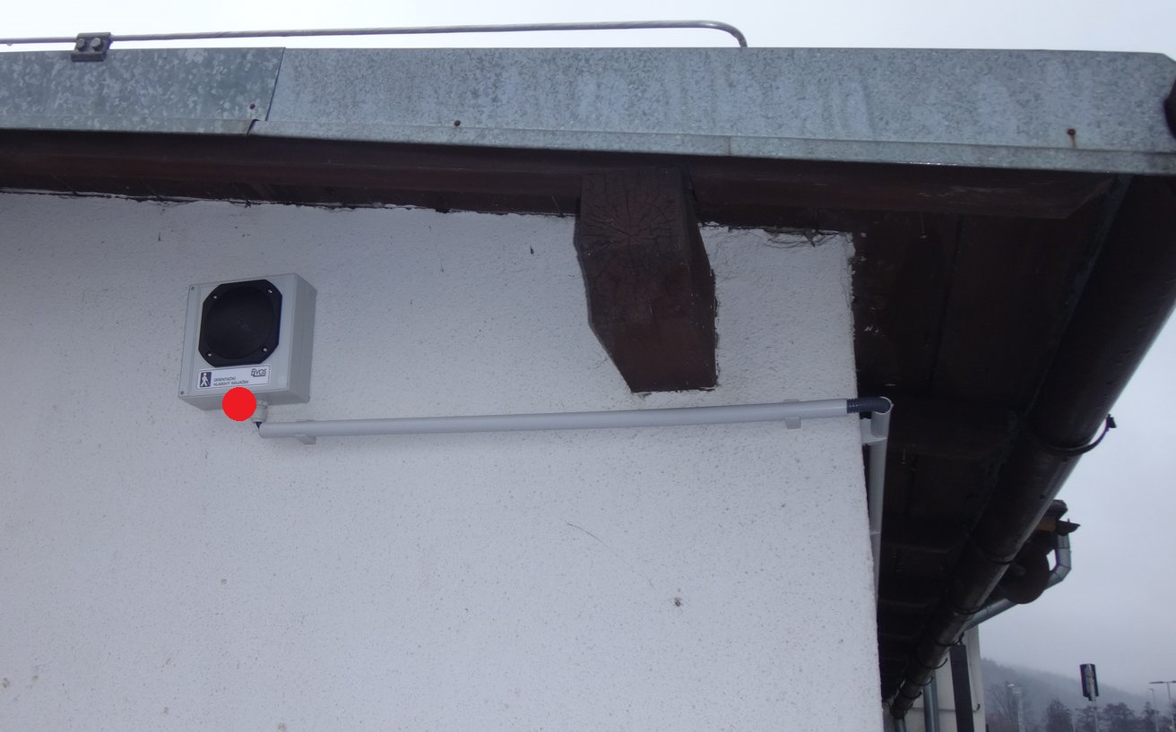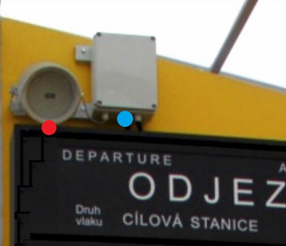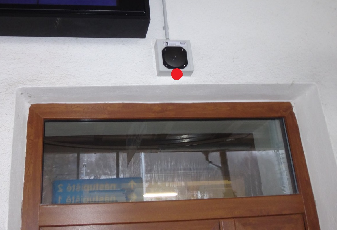 Pokud je krabička/řídící jednotka/reproduktor upevněn vysoko na zdi, pod zastřešením nebo na informační tabuli - obvykle měřit odrazem od středu spodní hrany objektu.