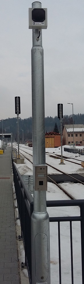 Hlasový komunikátor (HK) pro nevidomé slouží ke komunikaci s výpravčím/dispečerem k přivolání pomoci či podání informace o volnosti přechodu přes koleje.