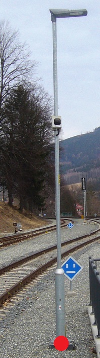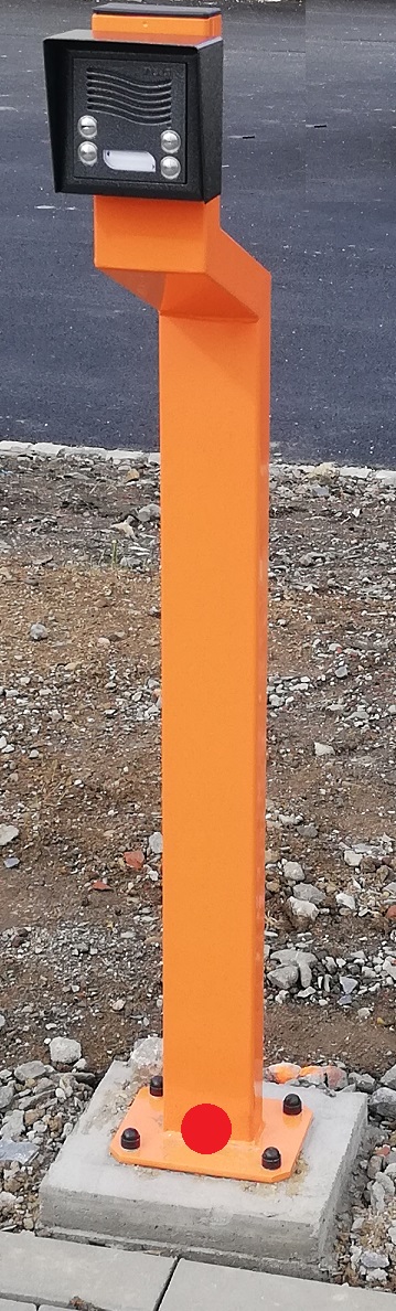 Samostatně stojící sloupek s krabičkou/reproduktorem - obvykle zaměřit jedním bodem středem sloupku v úrovni terénu. |