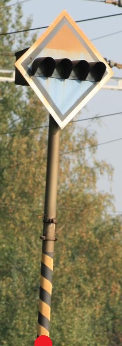 | Poznámka: | Může se vyskytovat i na neelektrizované trati. V případě umístění tabulky zkrácené vzdálenosti postupovat podle DM 10354. Pokud je návěstidlo pro elektrický provoz umístěna na jiném objektu (trakční podpěře nebo na trakčním vedení), používá se DM 10166. |