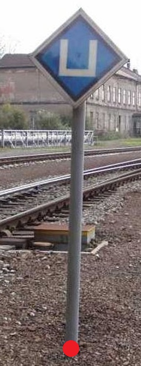 | Měřit v terénu: | Měřit jedním bodem v ose návěstidla na patce, případně ve výšce terénu. |