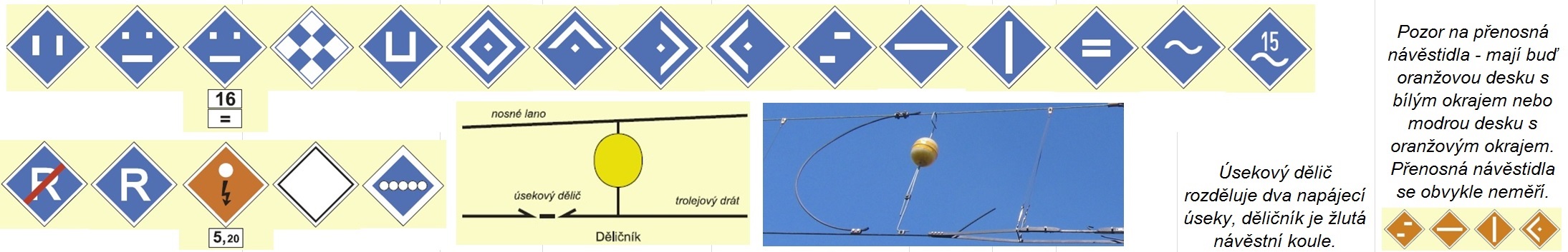 | Pomocné: | Druhy návěstidel pro elektrický provoz - viz D1 (účinnost od 1.7.2022 - strana 469-476). Zaměřuje se i trvale umístěné návěstidlo s dočasnou platností. |