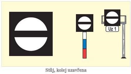 Poznámka:Vyskytuje se na starých (nemodernizovaných) seřaďovacích nádražích, zakazuje posunovat přes takto označené místo.