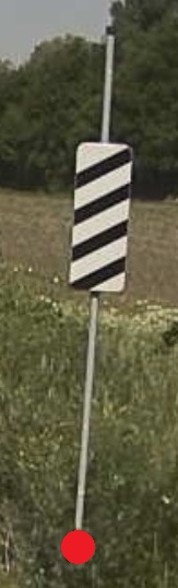 Měřit v terénu:Měřit jedním bodem v ose upozorňovadla na patce/terénu.