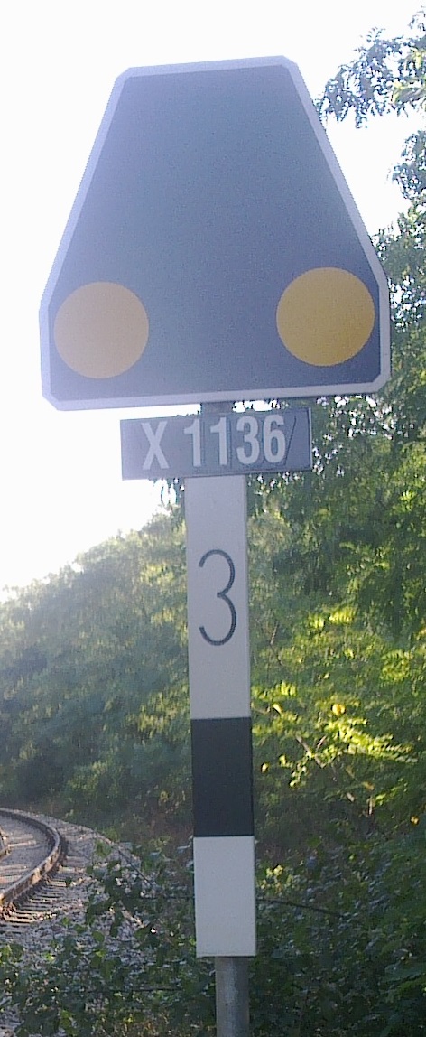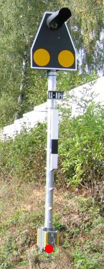 | Pomocné: | D1 (účinnost od 1.7.2022) strana 490: Případné černé číslo na označovacím pásu nebo na samostatné bílé tabulce (případně s černým orámováním) uvádí počet přejezdů vybavených PZZ anebo centrálních přechodů vybavených výstražným zařízením pro přechod kolejí, jejichž stav přejezdník návěstí. |