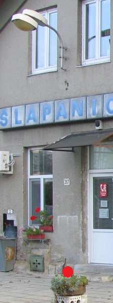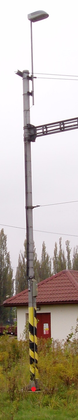 | Referenční bod staničení: | průmět upevnění na zeď budovy, výškově na terénu