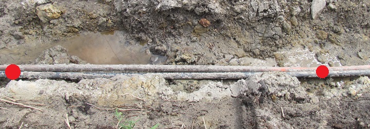 Měřit v terénu:Měřit lomové body osy kabelu před záhozem, výškově vrch kabelu.