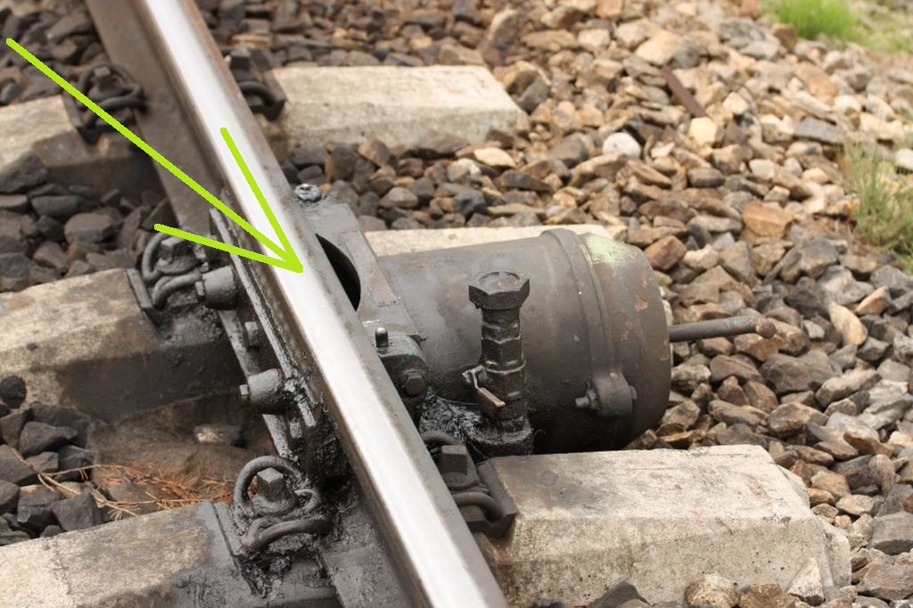 | Poznámka: | Vykreslit v ose koleje, natočit značku zobáčkem podle skutečné polohy mazníku (to znamená: je-li mazník vpravo od osy koleje, natočit zobáček vpravo od osy koleje). |